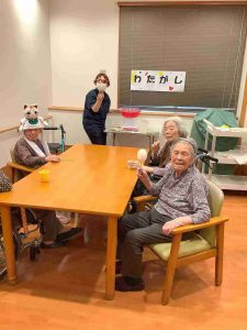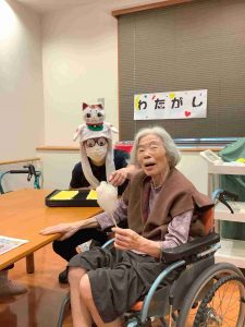 入居者様最初は驚かれておりましたが、後半は「私も着たい」と楽しまれておりました。
