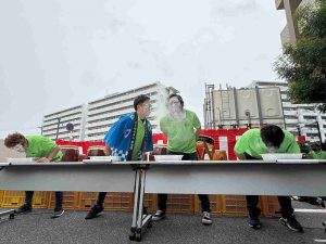 次は一般の方も参加して頂き、ラムネの早飲み🫗