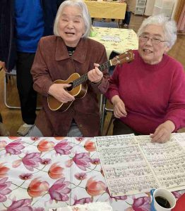 折り紙やウクレレを教えに来ていた地域の方と